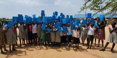 Children excited after receiving their scholastic materials supplied by UNICEF.