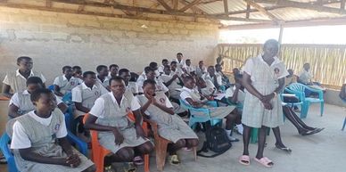 Girls waiting to receive their dignity kits in Glorious Girls' primary school.